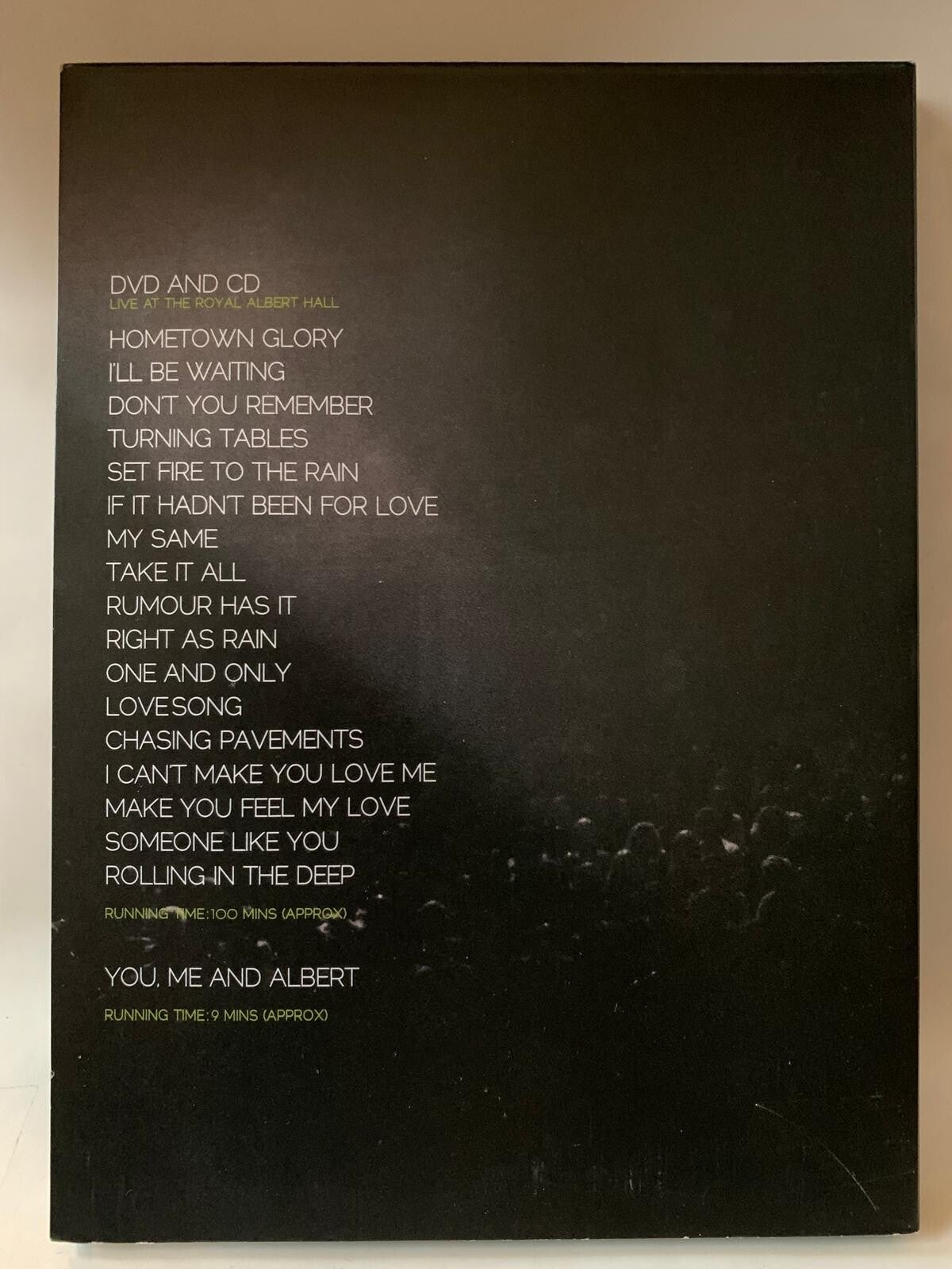 Ce CD audio présente 17 titres enregistrés lors de sa performance du 22 septembre 2011 à Londres. Il réunit les plus grands succès tirés de ses deux premiers albums studio, 19 et 21, tout en incluant des reprises inédites.
